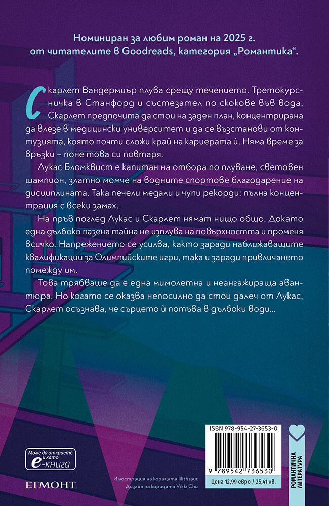 Скарлет Вандермиър плува срещу течението. Третокурсничка в Станфорд и състезател по скокове във вода, Скарлет предпочита да стои на заден план, концентрирана да влезе в медицински университет и да се възстанови от контузията, която почти сложи край на кариерата ѝ. Няма време за връзки – поне това си повтаря.