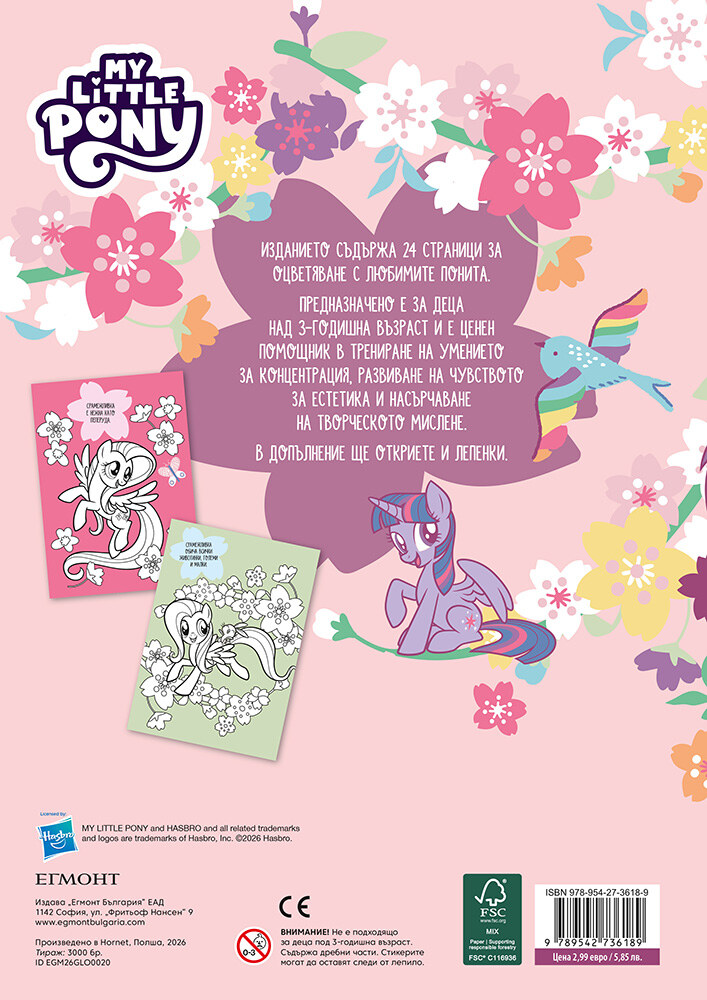 Изданието съдържа 24 страници за оцветяване с любимите понита.