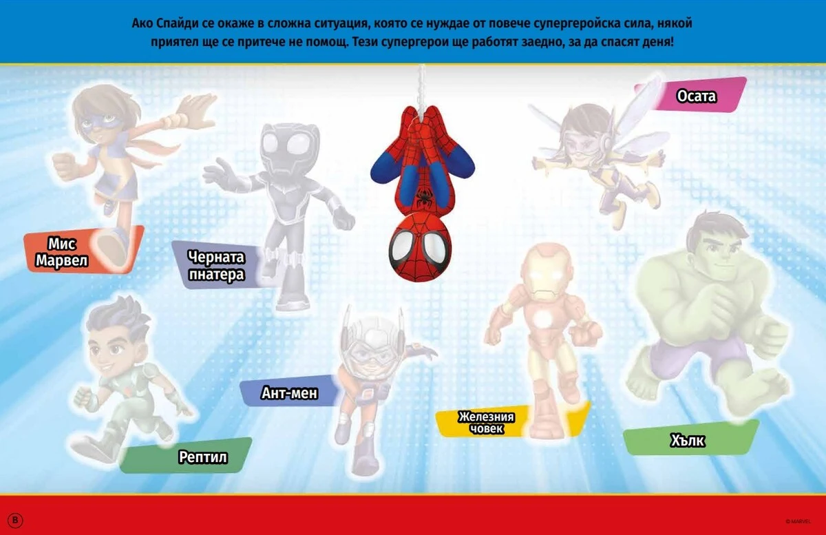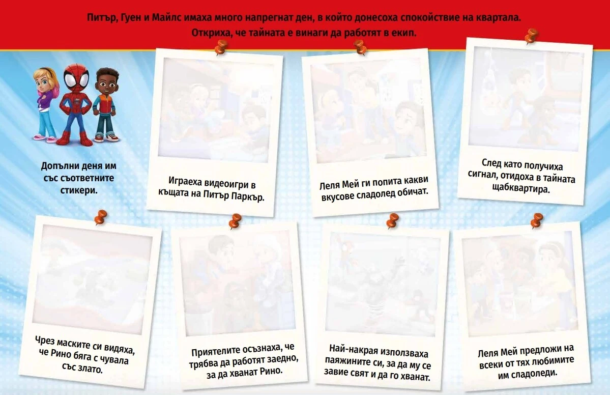 Помогни на Спайди и невероятните му приятели да хванат злодеите и да спасят деня! Използвай лепенките, за да допълниш историите и се забавлявай, докато декорираш висящата дъска! Да се залавяме за работа!